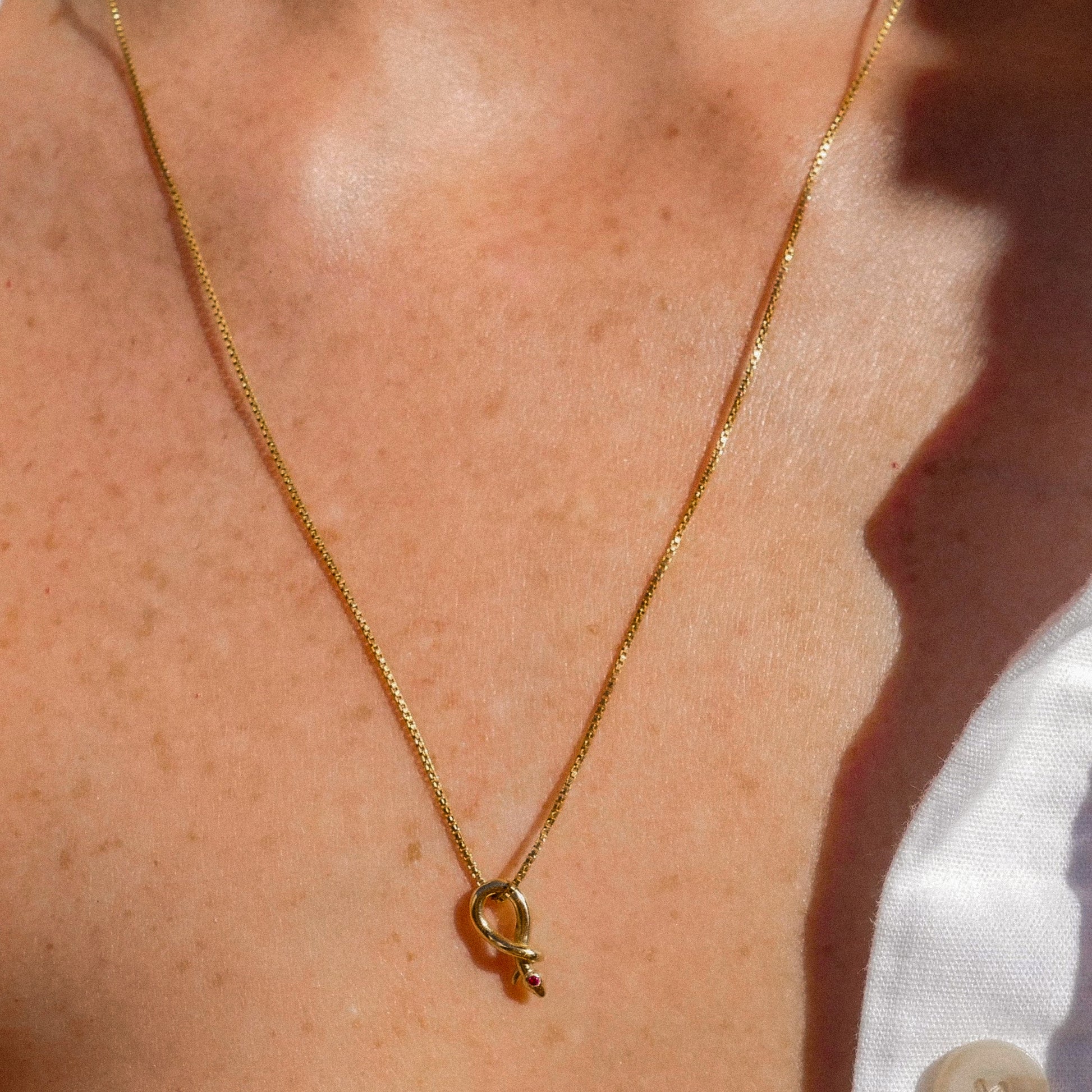 Serpiente de oro amarillo de 14 quilates con un rubí auténtico.
