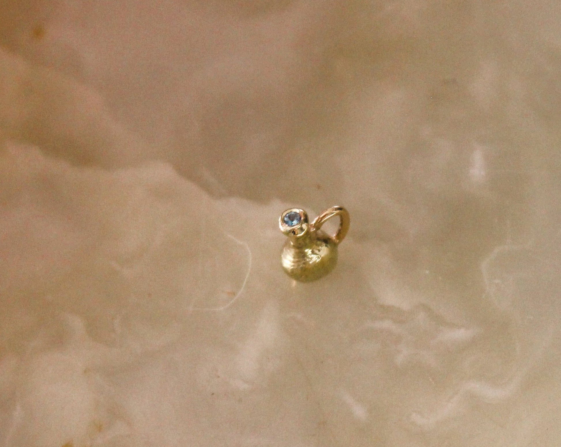 - Jarra de oro amarillo macizo de 18 quilates con auténtica aguamarina engastada al ras.