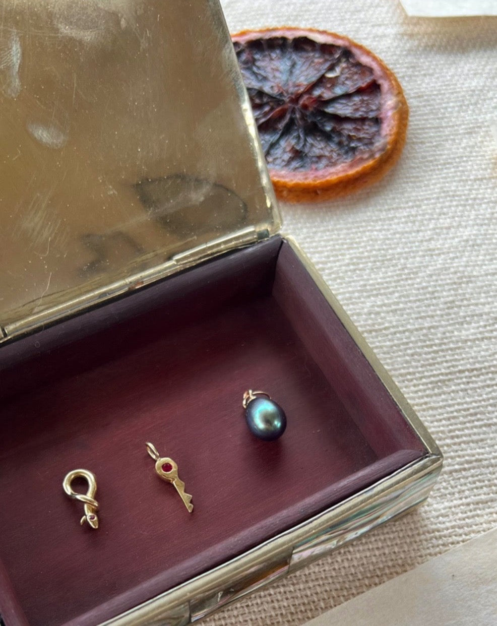 Llave de oro amarillo macizo de 18 quilates con un pequeño rubí genuino redondo en una cadena de caja vintage de 18” de oro de 14 quilates.