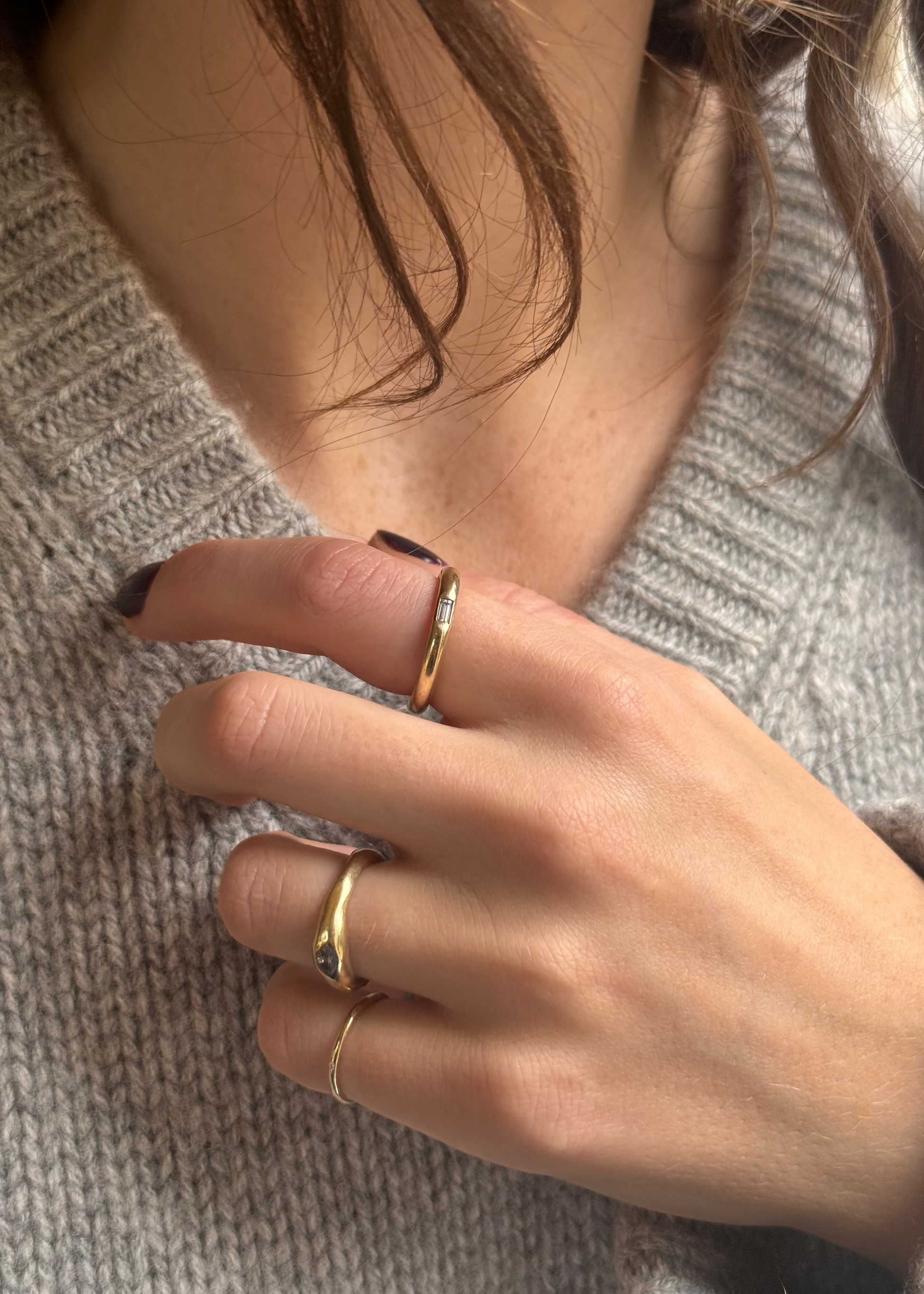 One-of-a-kind. 14K Solid Yellow Gold. VS1 Baguette Diamond.