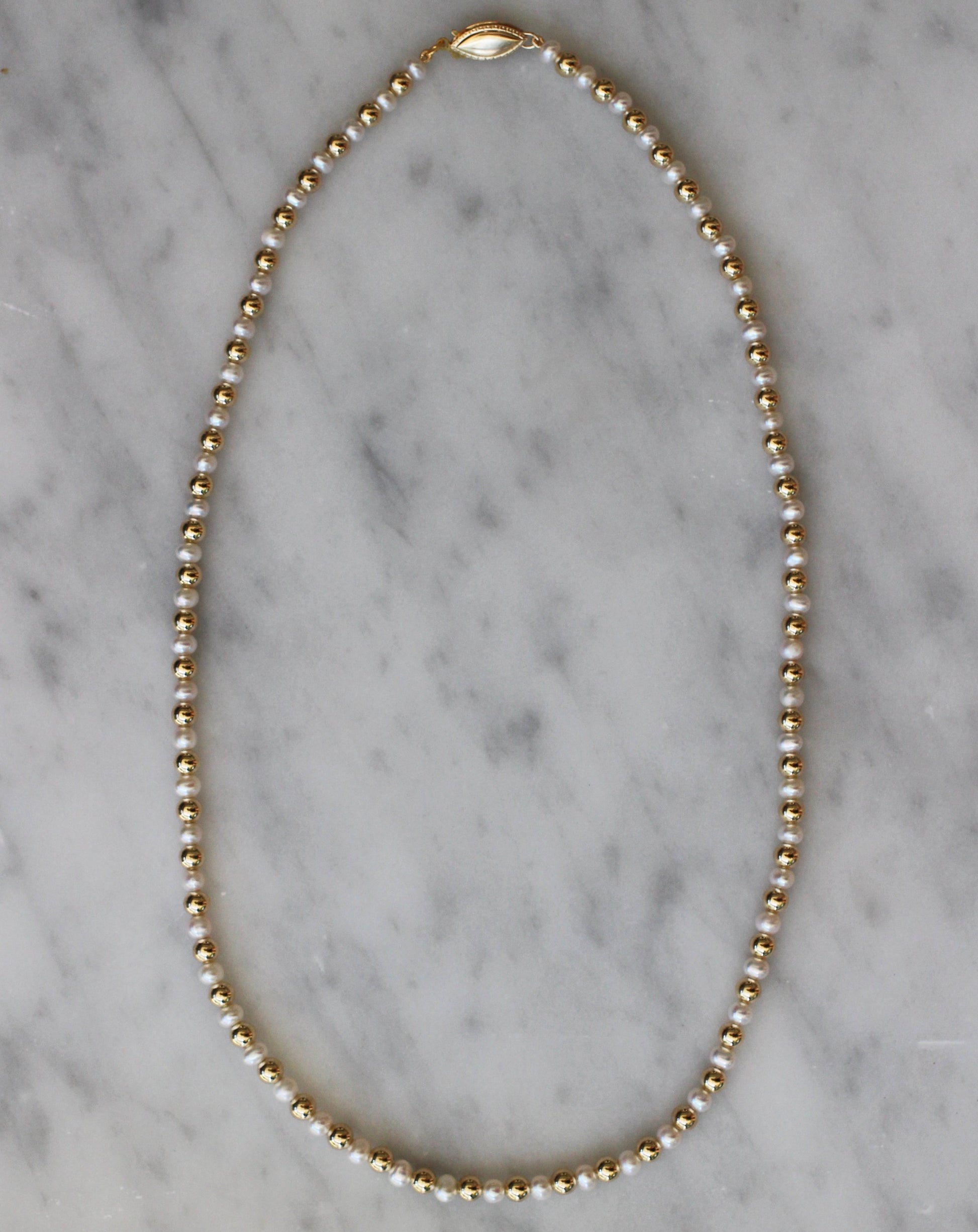 Cuentas rellenas de oro de 14 quilates y perlas de agua dulce.