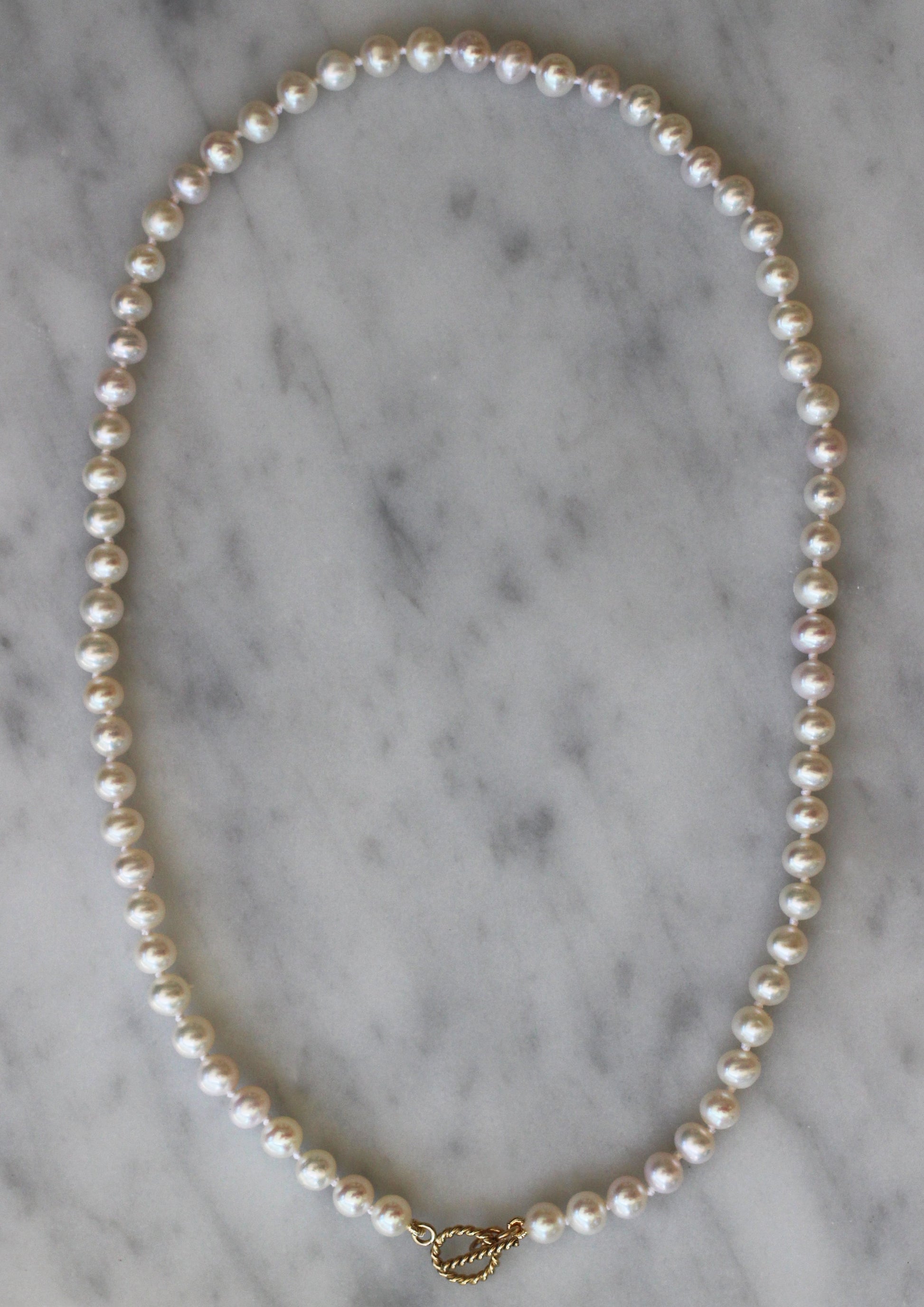 Perlas de agua dulce ensartadas a mano con cierre de palanca relleno de oro de 14 quilates.