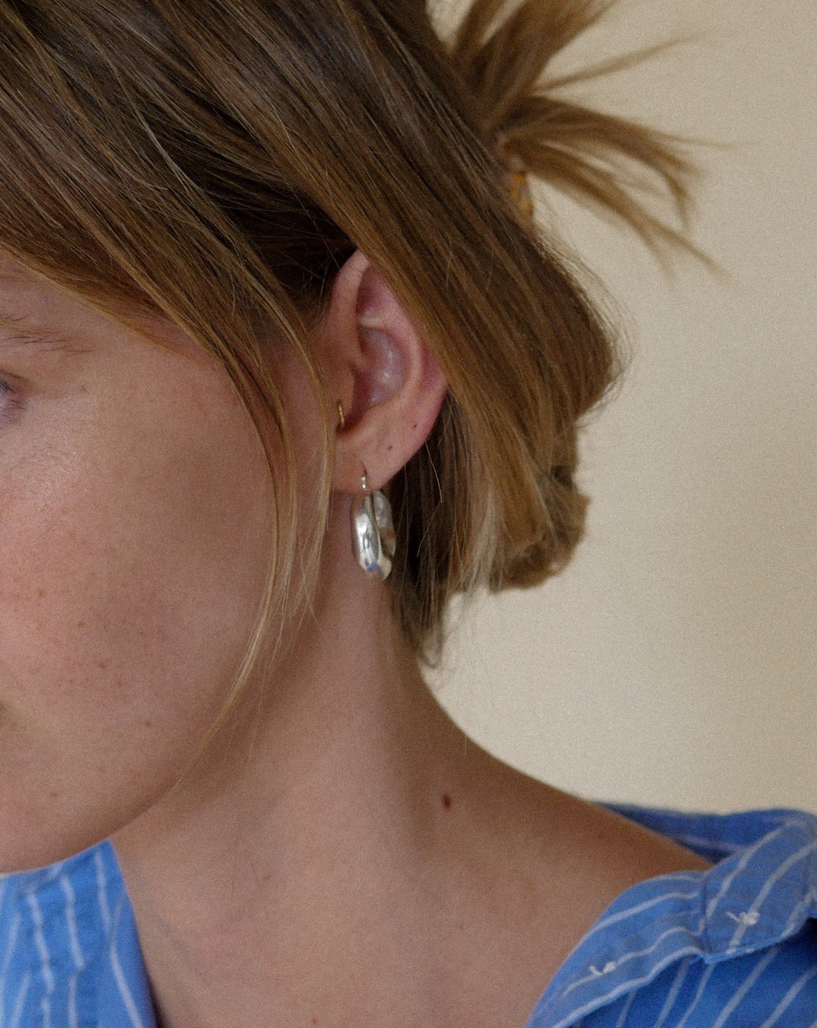 Los imprescindibles para el día a día. Los aros Figaro Hoops son una versión única y orgánica de los aros esenciales para el día a día. Están diseñados meticulosamente para favorecer tu rostro y fabricados conscientemente para durar años como tus aros favoritos. Cada par lleva aproximadamente 4 horas de creación. Se fabrican aquí, con nosotros, en California, para garantizar la calidad y las buenas condiciones laborales.