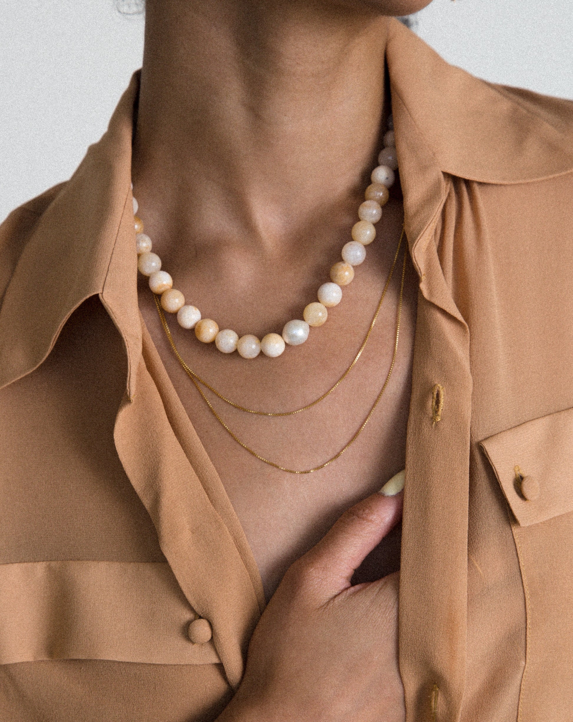 Cadena de eslabones regulable de forma continua. Cierre de resorte con bola deslizante ajustable.