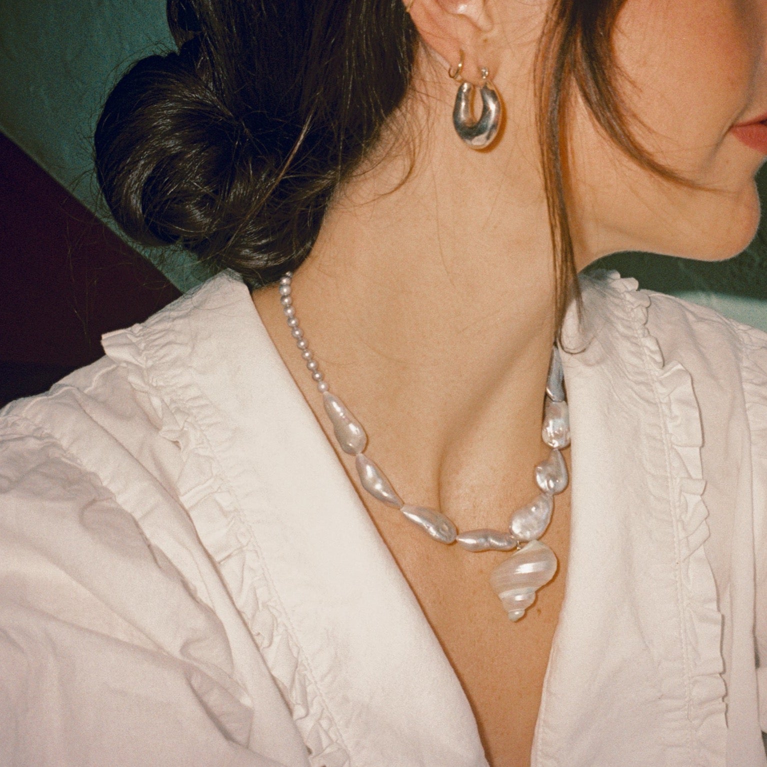 Perlas de agua dulce. Concha turbo auténtica. Detalles en plata de ley.