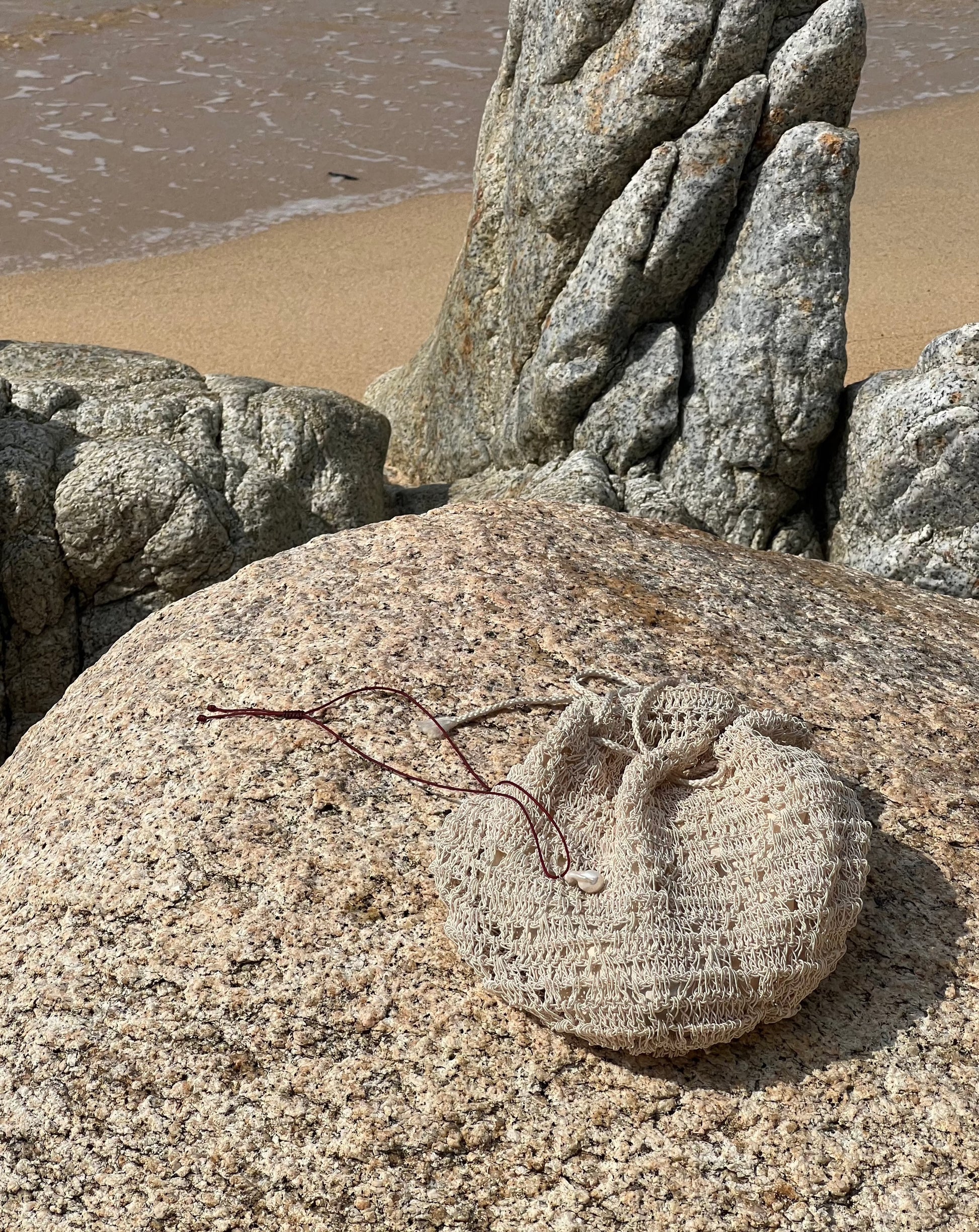 Cordón de macramé de nailon con sistema de tirar para ajustar.