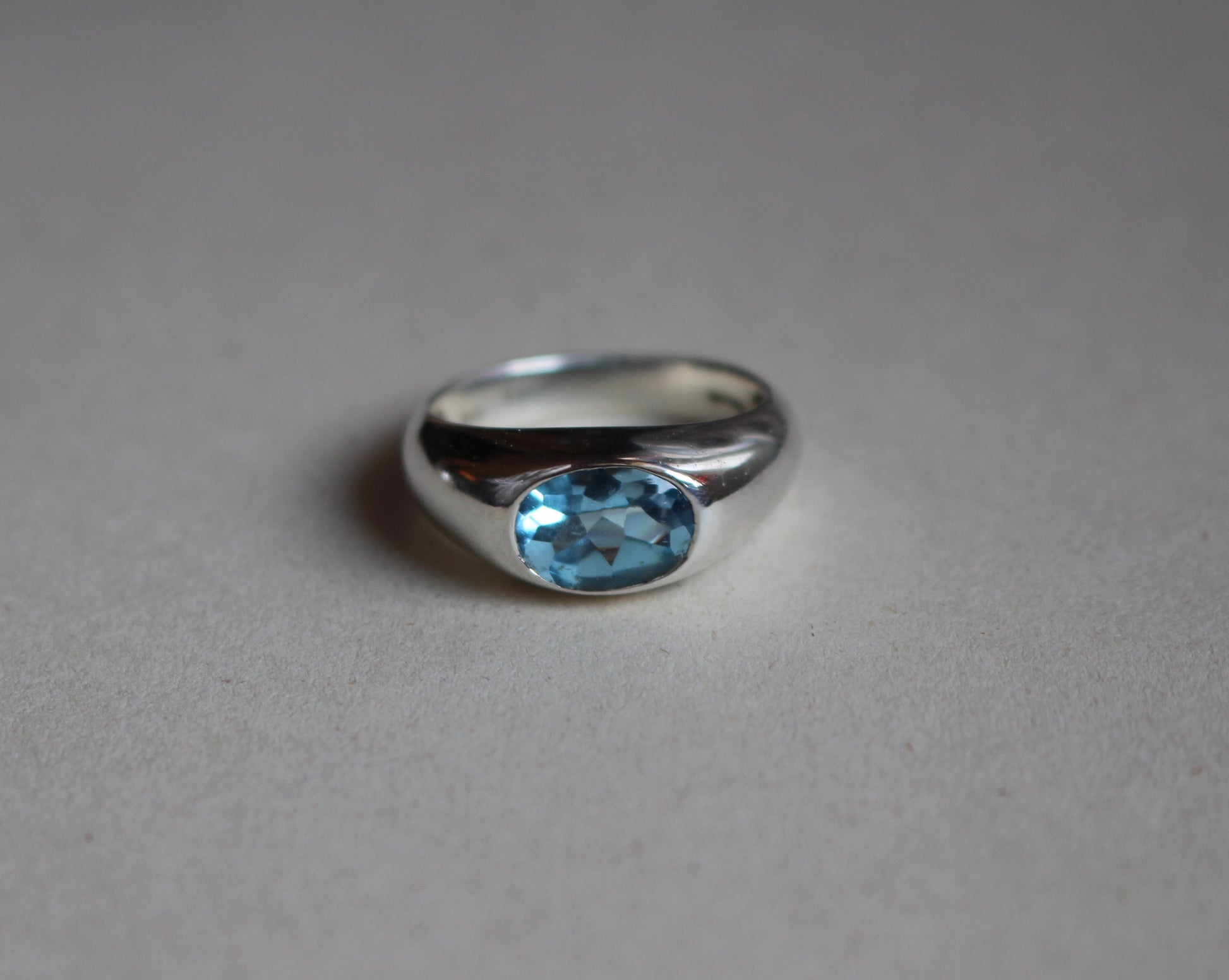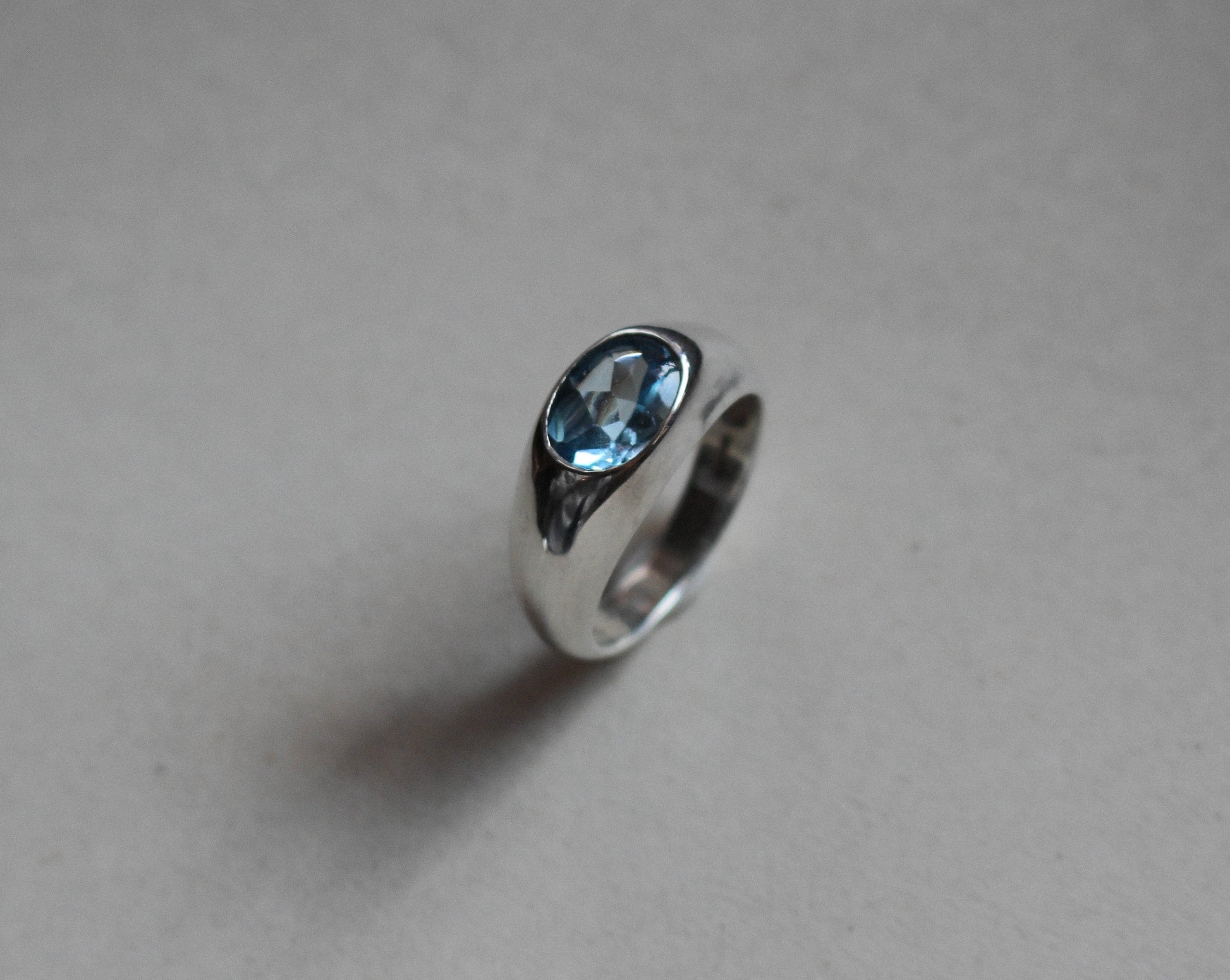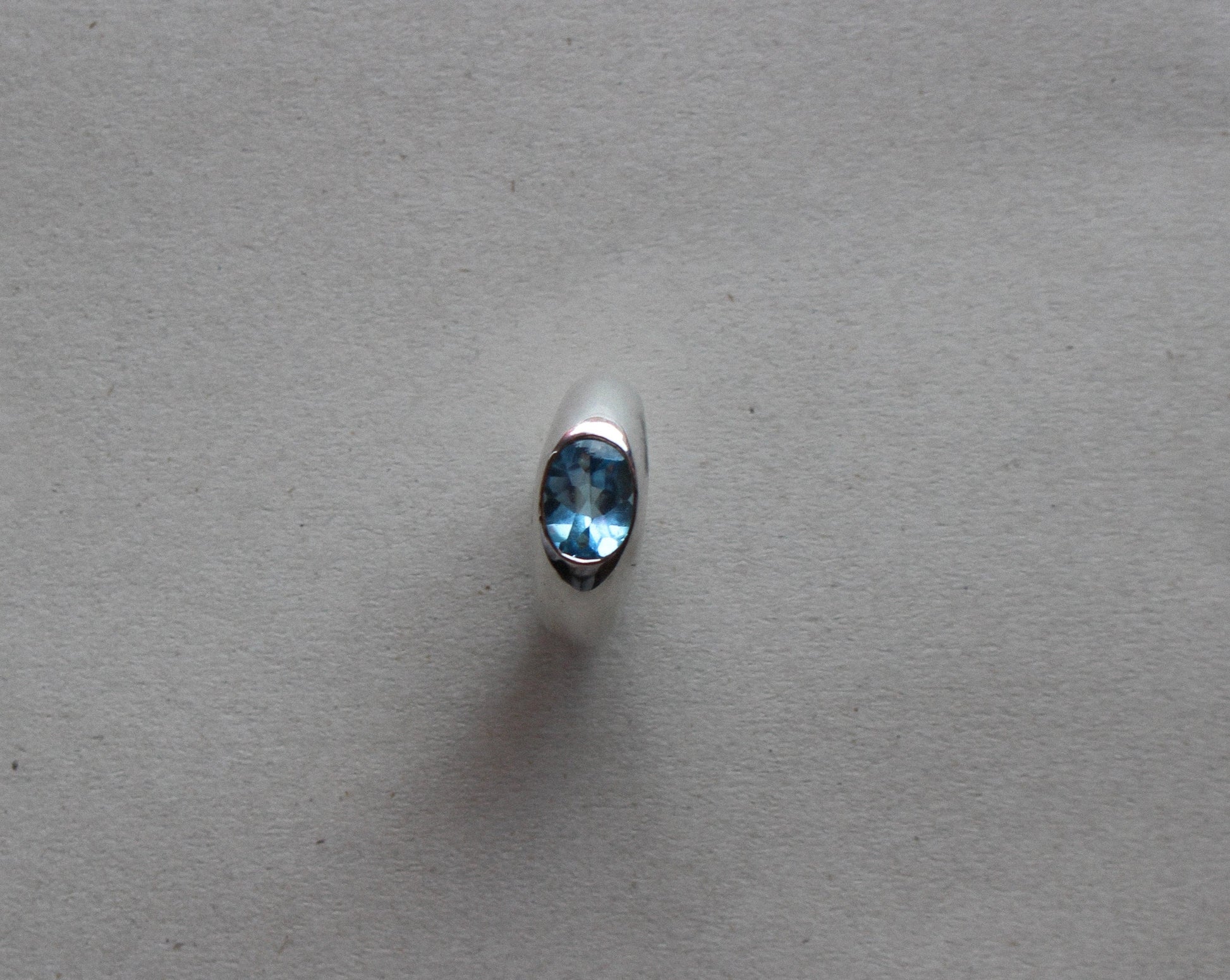 Topacio azul vibrante con punta pulida engastado en plata esterlina lisa. Hecho a mano.